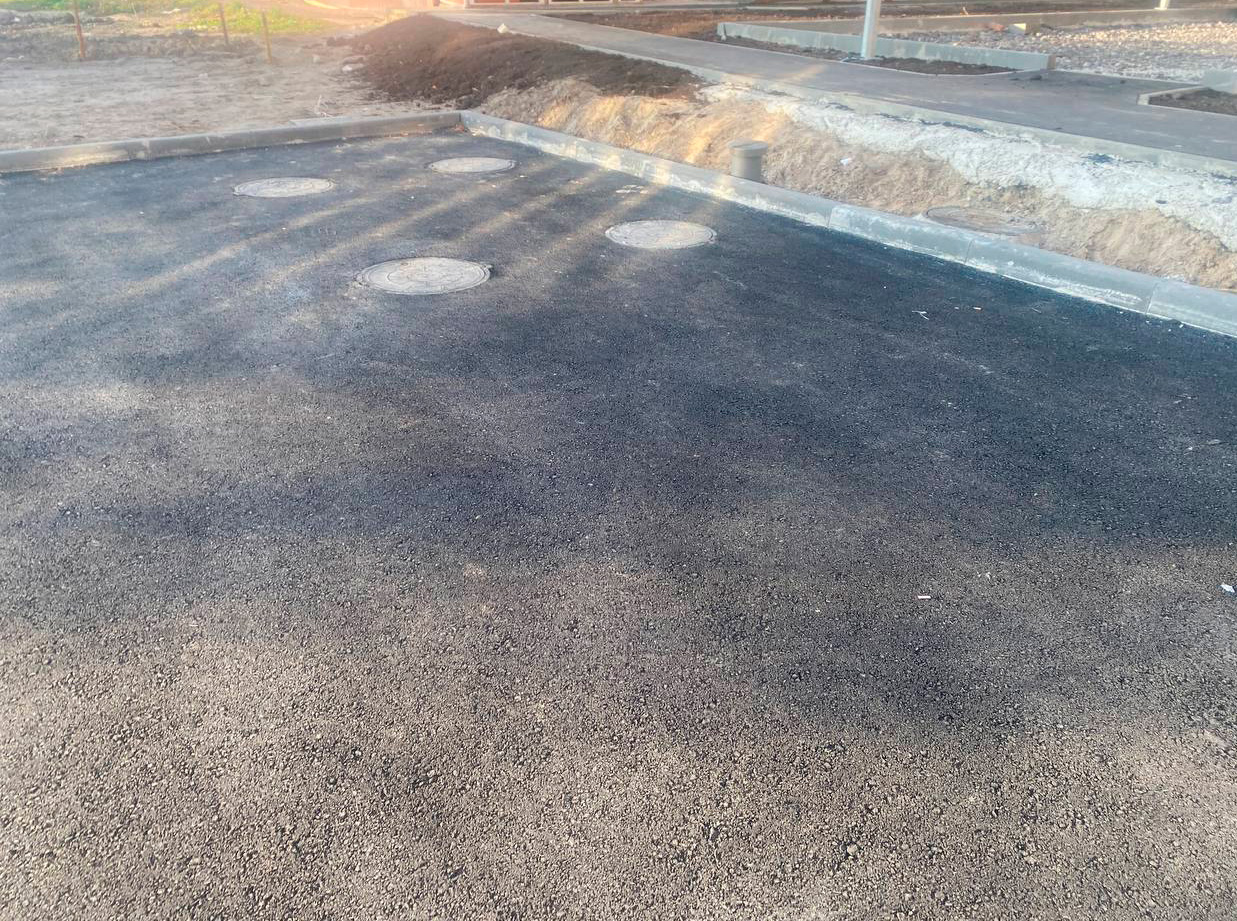 Асфальтирование части парковки и установка бордюров.